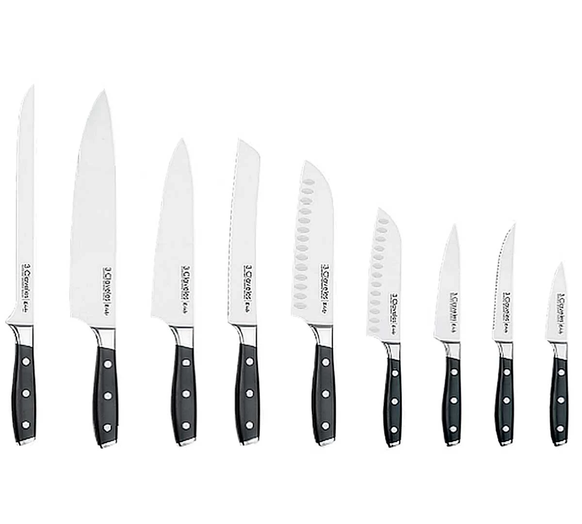 Los Cuchillos Serie Toledo de 3 Claveles. Serie de 8 cuchillos, aptos para lavavajilla, en pulido mate y mango POM. Se venden por separado, también disponible en pack de 6 piezas.