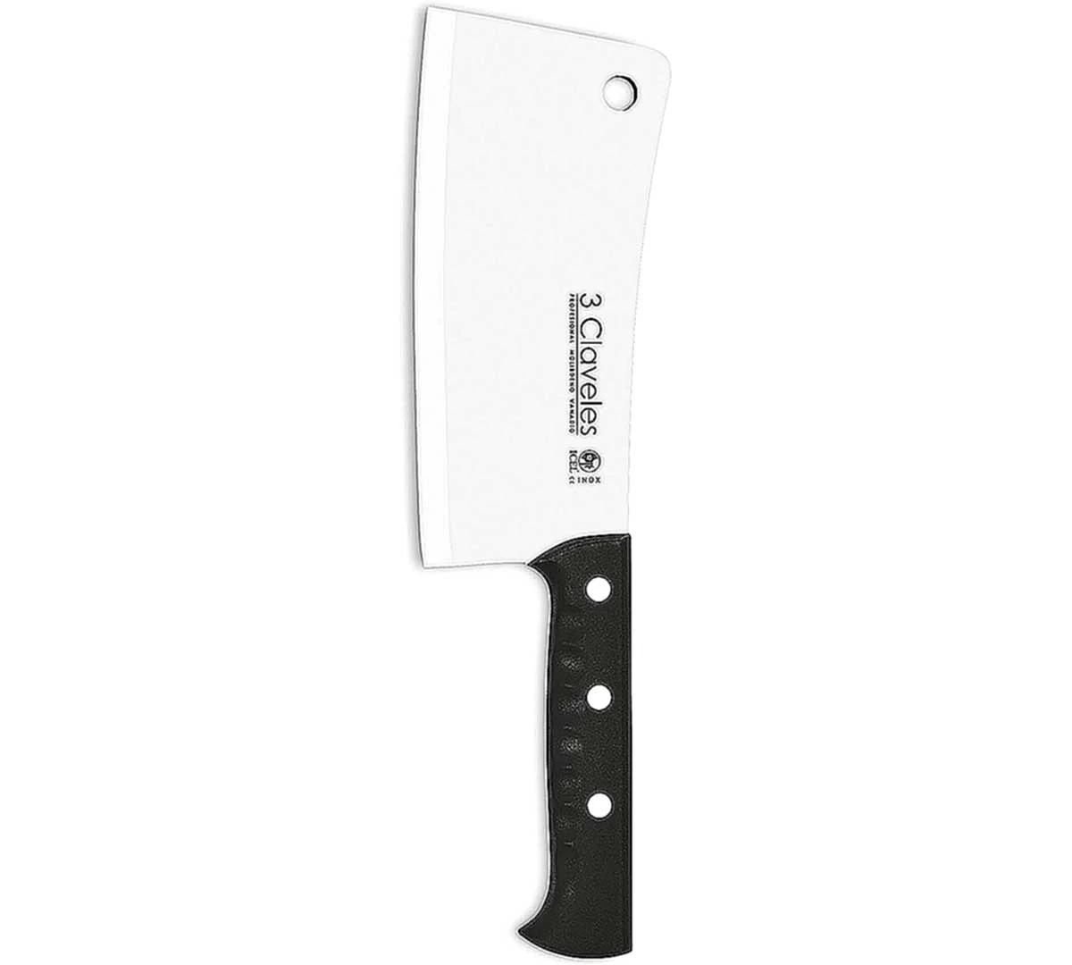 La Hachuela Carnicero de de 3 Claveles tiene la hoja ancha y el filo estable idónea para trocear piezas de carne.