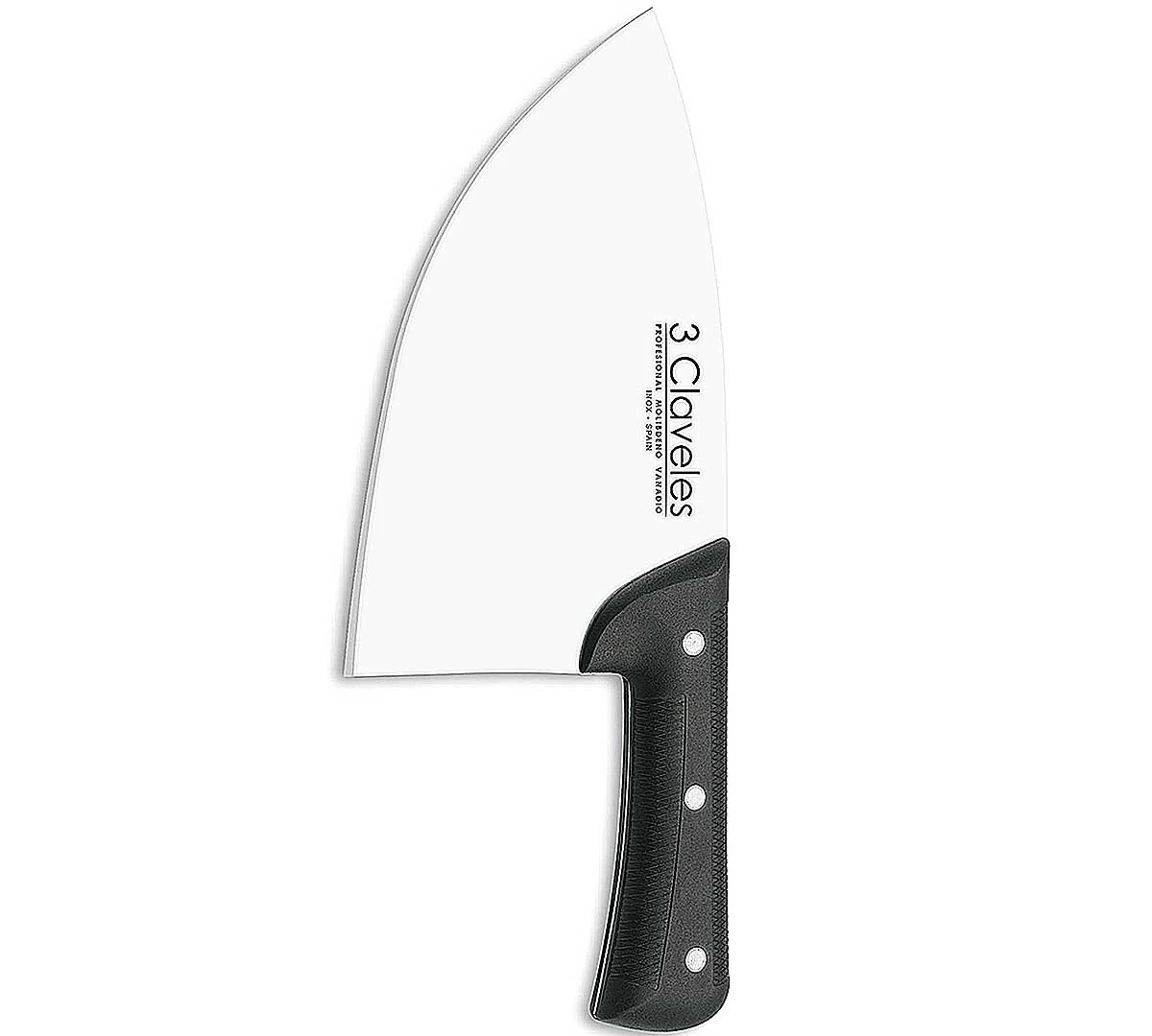 La Hachuela Chuletero de 3 Claveles está fabricada en acero inoxidable y está indicada para cortar piezas grandes de carne.
