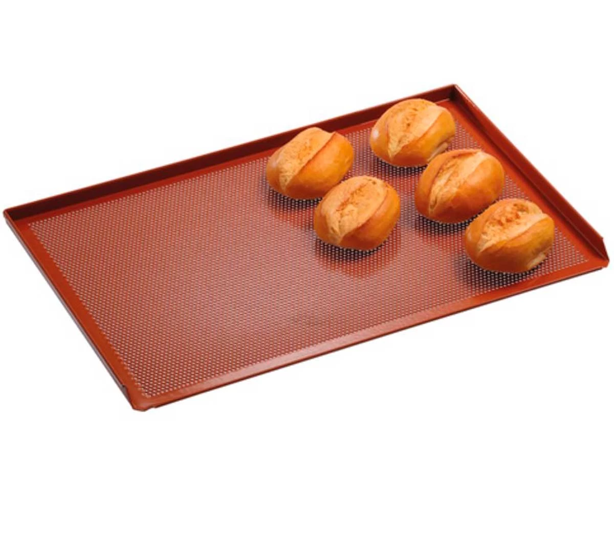 La Bandeja Perforada y Siliconada de Aluminio 60 x 40 de Bartscher es apta para hornos. Tiene un recubrimiento de silicona. Con 3 bordes en los laterales para cocinar y transportar de manera segura los alimentos.