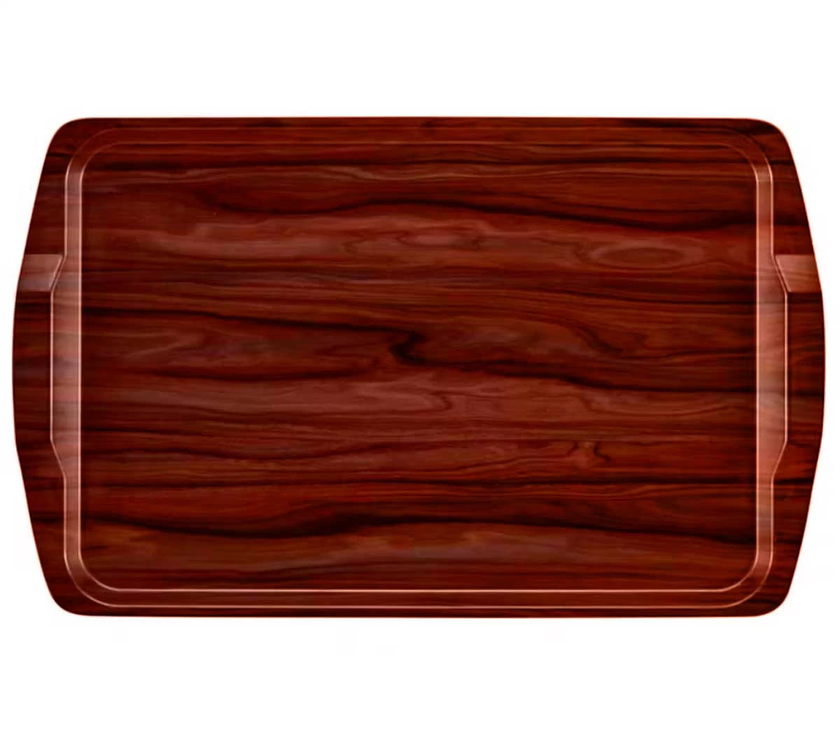 Esta bandeja también está disponible en color wengué, acero bruñido, madera de caoba, madera abedul, teca, blanco, negro, beige, gris o granito carboncillo bajo pedido. El pedido mínimo para estos colores es de 120 unidades. También se puede personalizar con el logo de tu empresa. Consúltanos para más información.