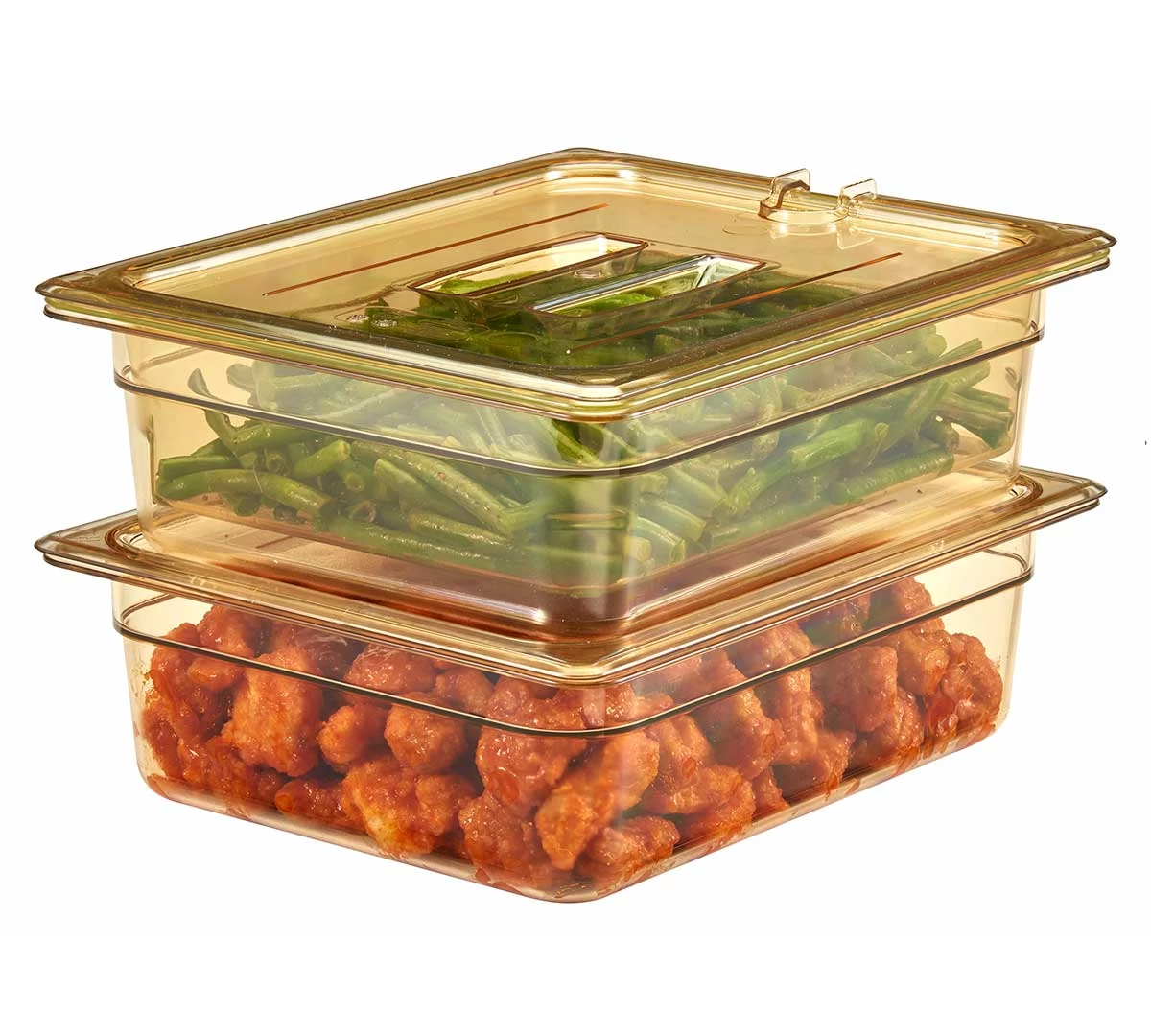 La tapa soporta el calor, por lo que es ideal para utilizar en microondas, mesas, hornos y vitrinas calientes.