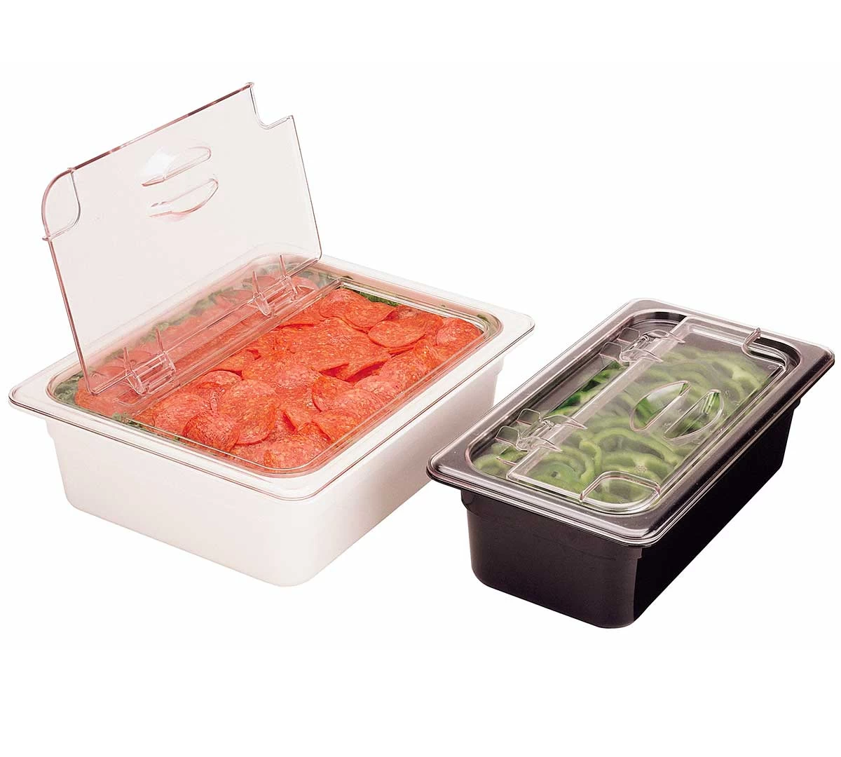 La Tapa Policarbonato Camwear con Bisagra FlipLid y Muesca de Cambro está diseñada para mantener la frescura, el sabor y la calidad de los alimentos durante todo el proceso de almacenamiento y preparación. Además, ayuda a disminuir la contaminación cruzada.