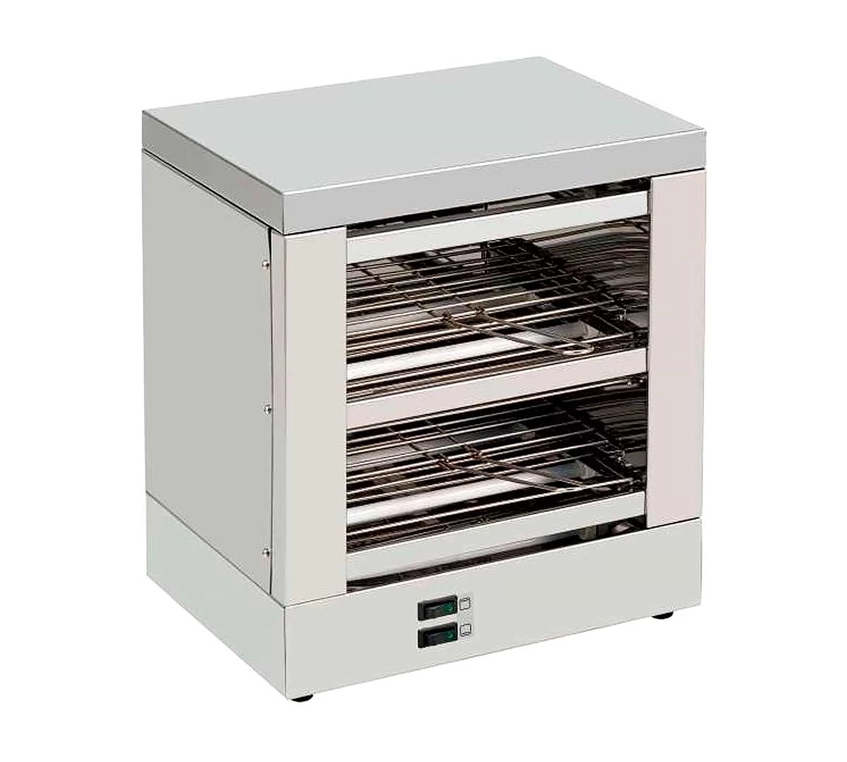 El Tostador Eléctrico Slim Line TE2 Linea Aveiro de Clima Hosteleria tiene dos niveles y las resistencias son de cuarzo.