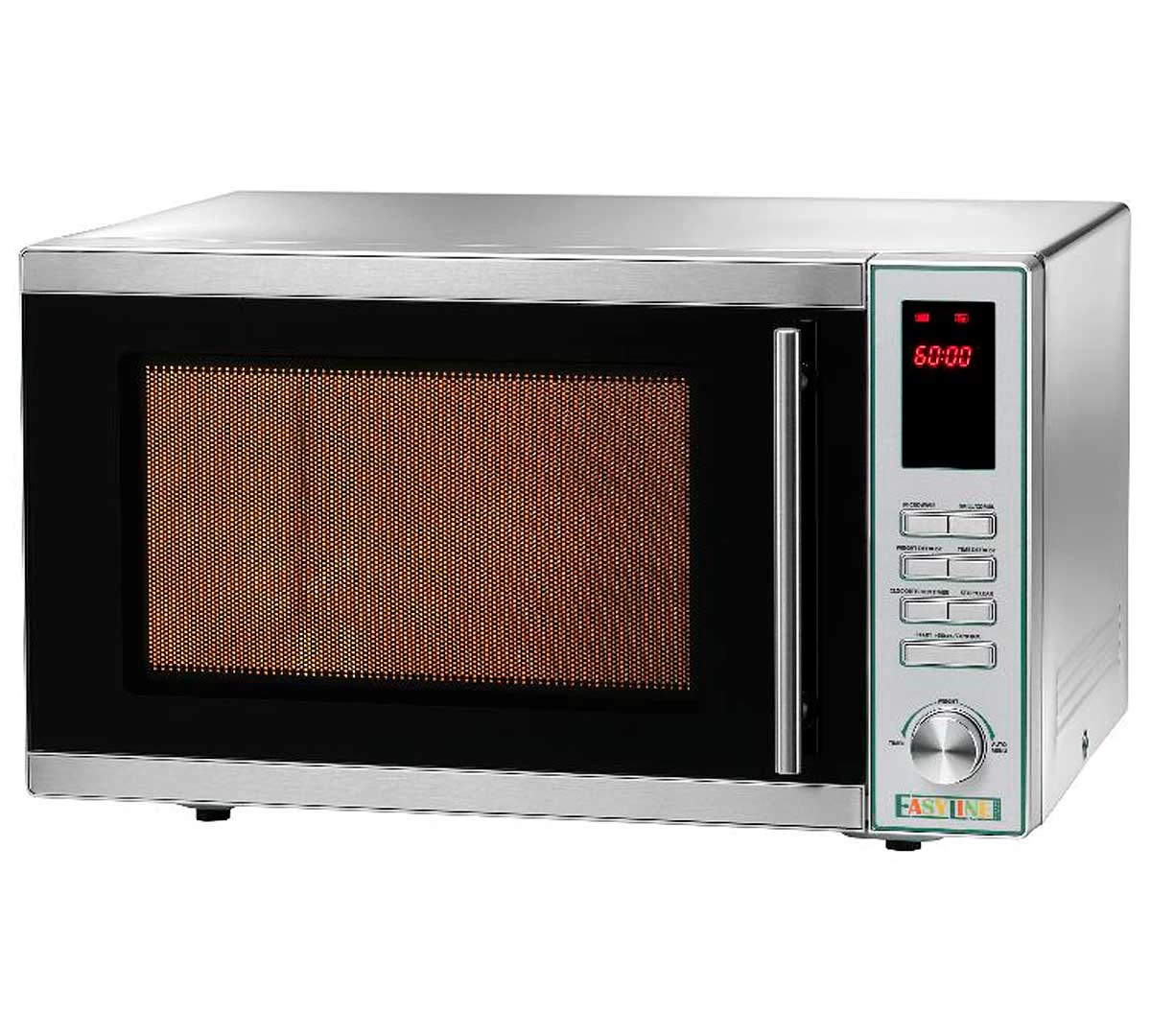 El Horno Microondas M de Easyline tiene 25 litros de capacidad y control digital. La cámara de cocción y el revestimiento exterior son de acero inoxidable.