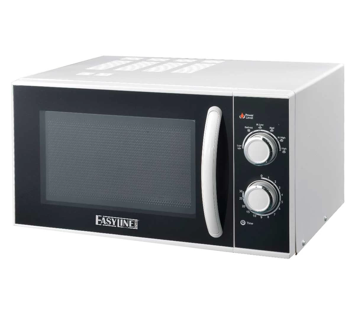 El Horno Microondas M25LZS de Easyline tiene 25 litros de capacidad, control mecánico y plato giratorio. Fabricado en chapa pintada en color blanco con puerta de cristal.
