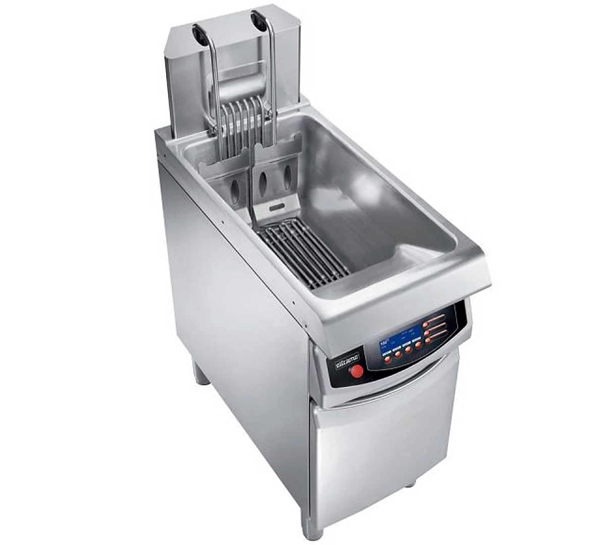 Freidora Alto Rendimiento Friggy E de Elframo, mantiene bajo el consumo de electricidad y respeta las características organolépticas del aceite, para proporcionar un producto frito de alta calidad, crujiente y ligero. Además, controla la temperatura del aceite y su rapidez de recuperación.