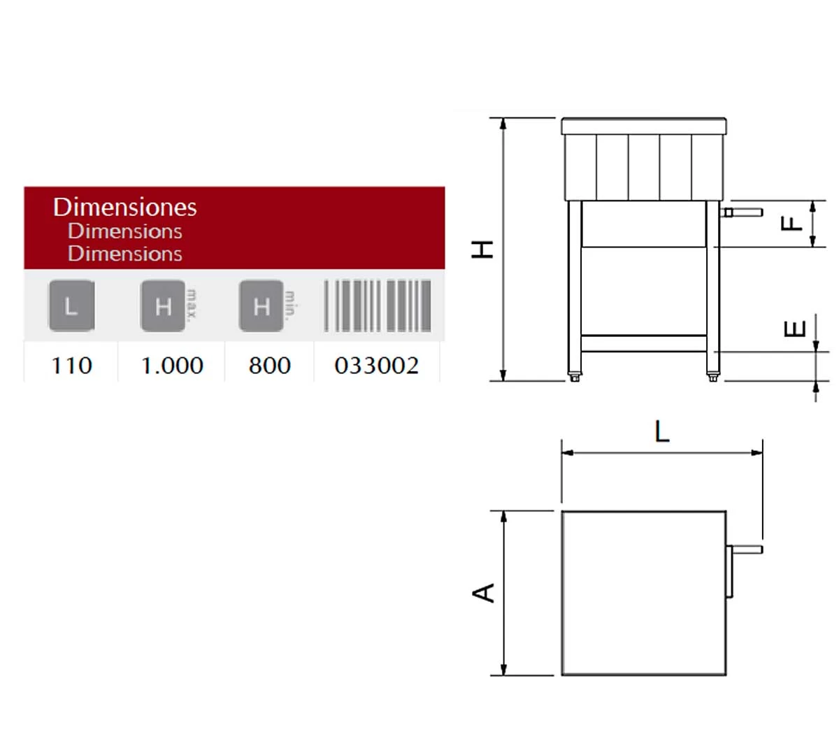 - Fabricado en acero inox AISI 304.