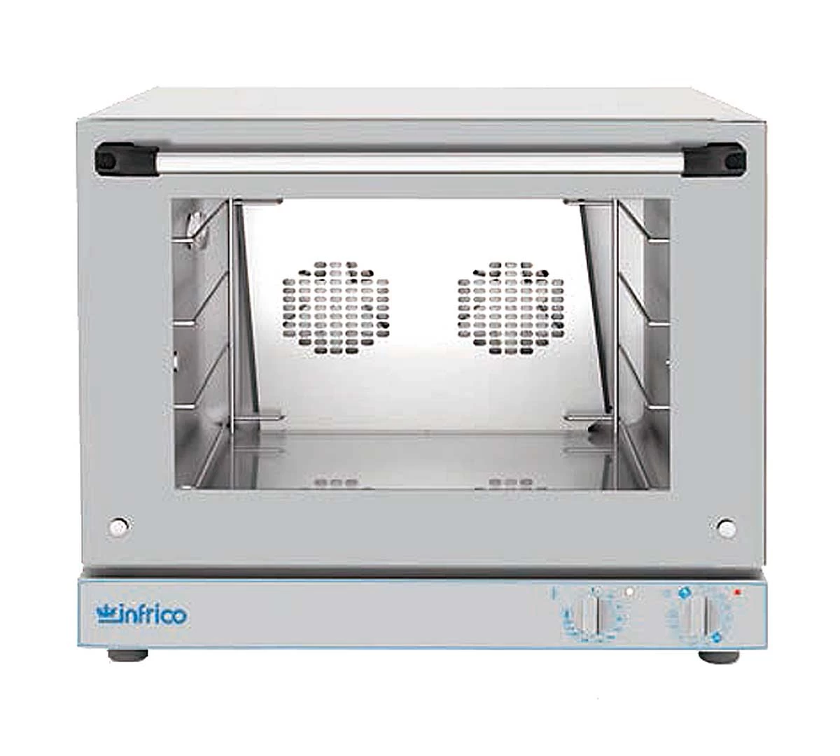 El Horno de Convección HE424 de Infrico está especialmente diseñado para pastelería o panadería. Está construido interior y exteriormente en acero inoxidable.