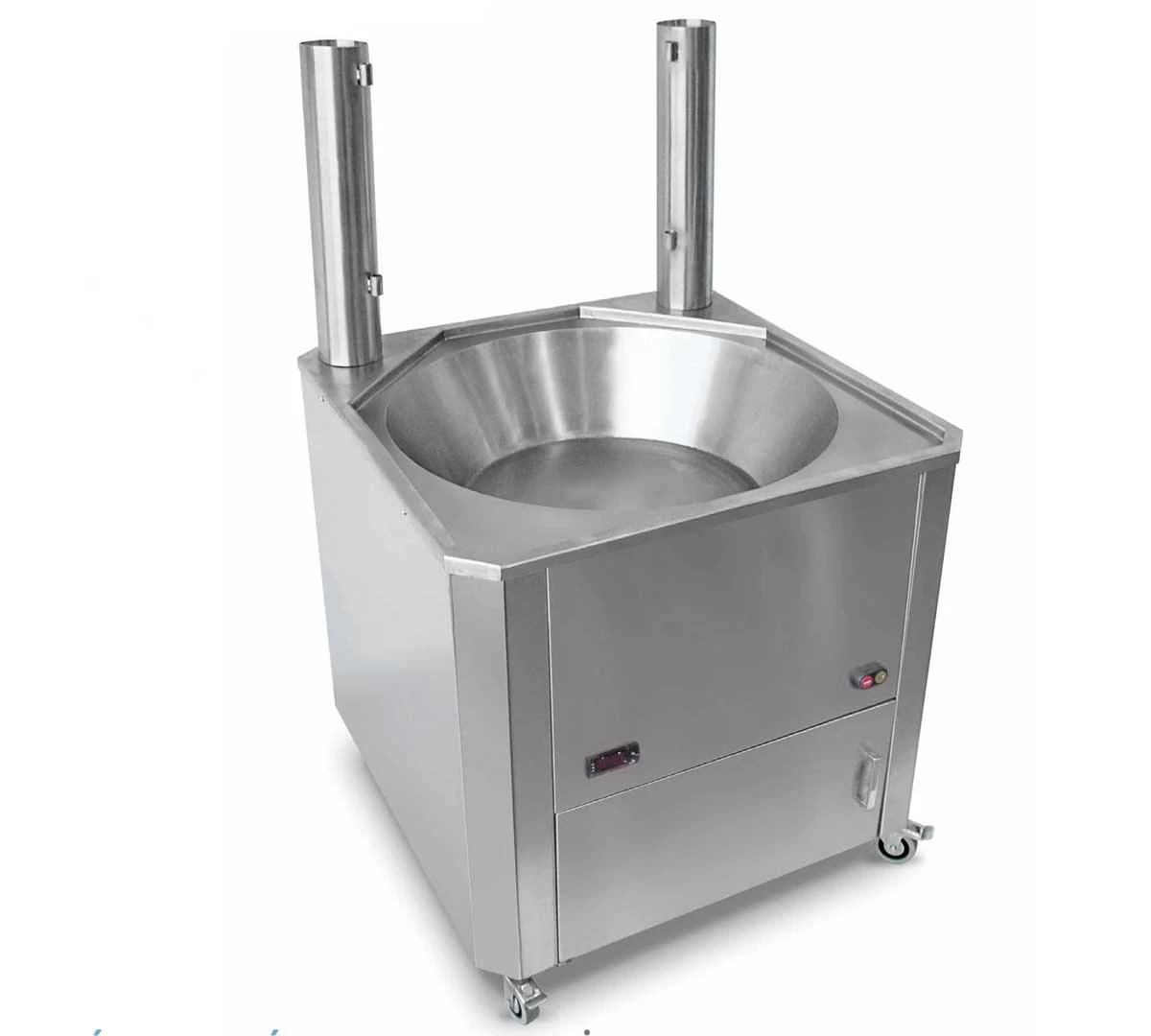El diámetro superior mide 80 cm y el inferior 60 cm. - Freidora Fogón FGAUT100, con 38 litros de capacidad y dimensiones 100 x 100 x 80 cm.