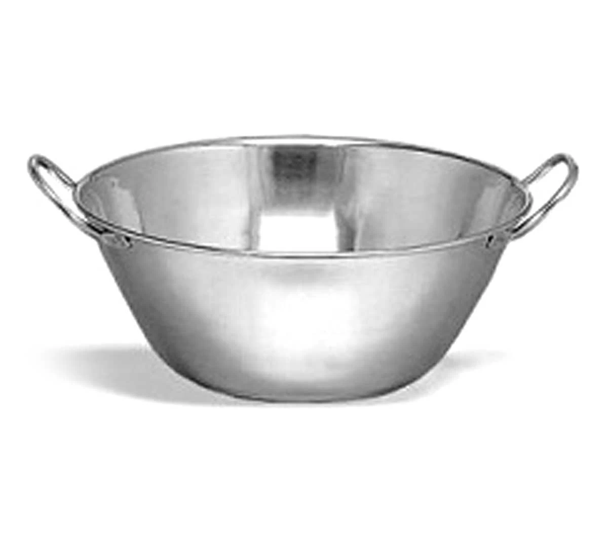 El Caldero Inox Fondo Bombeado con Asas de J. L. Blanco es un complemento ideal para el amasado en el proceso de elaboración de churros.
