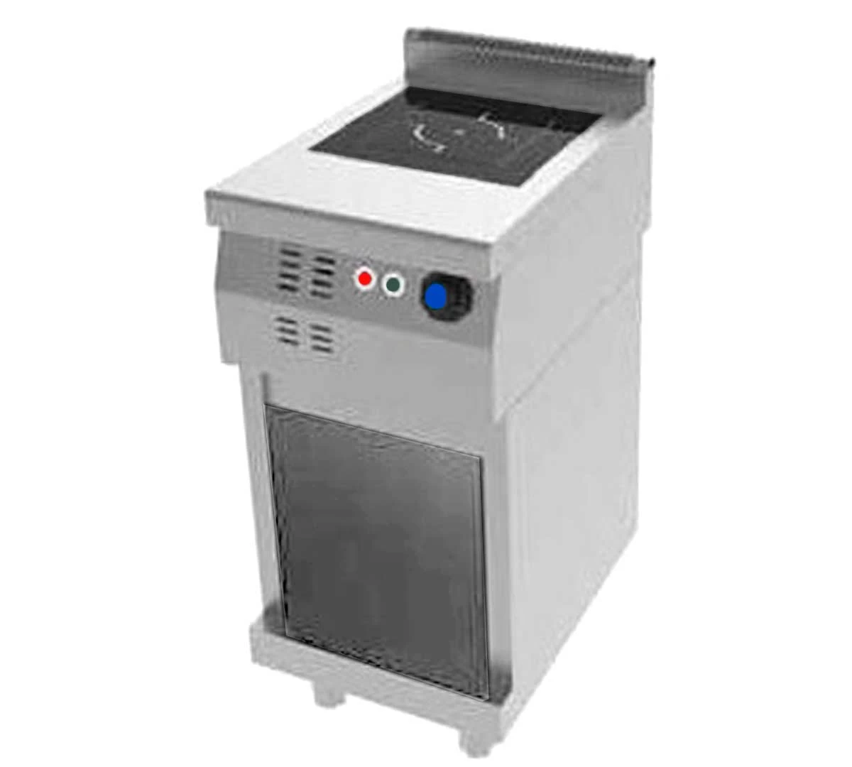Placa de Inducción Serie 600 de Pie de Jemi, construida en acero inoxidable con 3,5 kW de potencia.