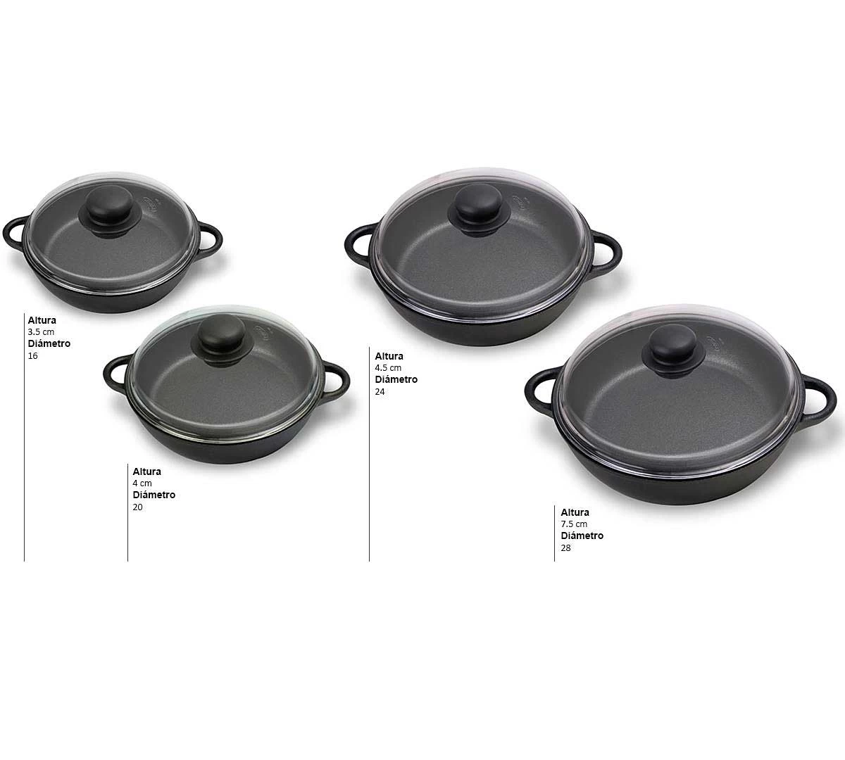 | Elige Diámetro - Altura | Ø 16 cm – 3,5 cm, Ø 20 cm – 4 cm, Ø 24 cm – 4,5 cm, Ø 28 cm – 7,5 cm |