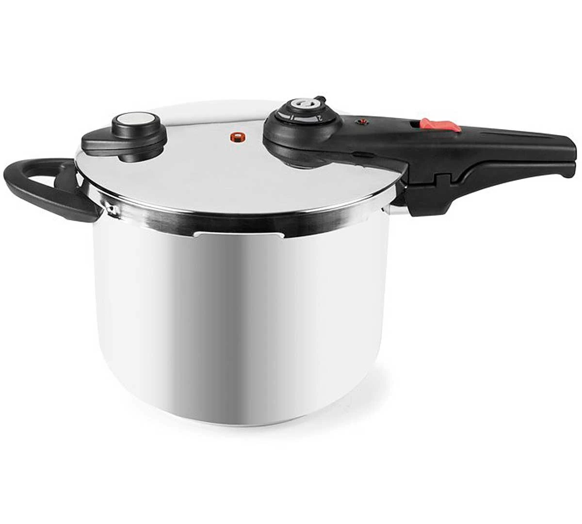 Diseñada con marcaje interior que indica la capacidad de la olla y visualizador de los niveles de cocción mediante anillas de colores. Está equipada con válvula de control de presión, que permite elegir entre diferentes niveles de cocción que son rápido o súper rápido.