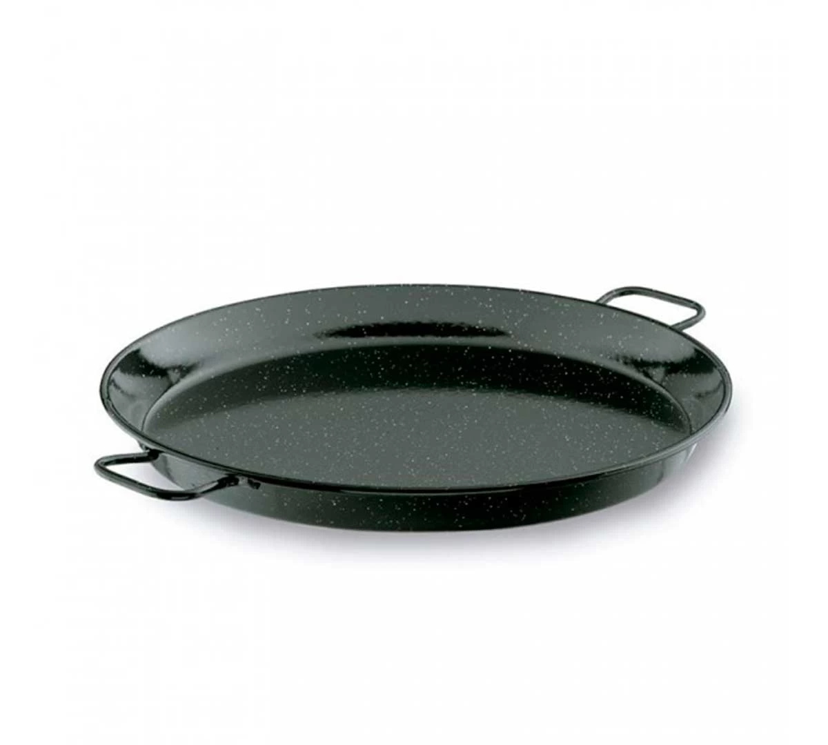 Este modelo de paella de hierro está recubierta con esmalte vitrificado. Es apta para fuentes de calor de vitrocerámica, eléctrica, gas, inducción y horno. También es apta para lavavajillas.
