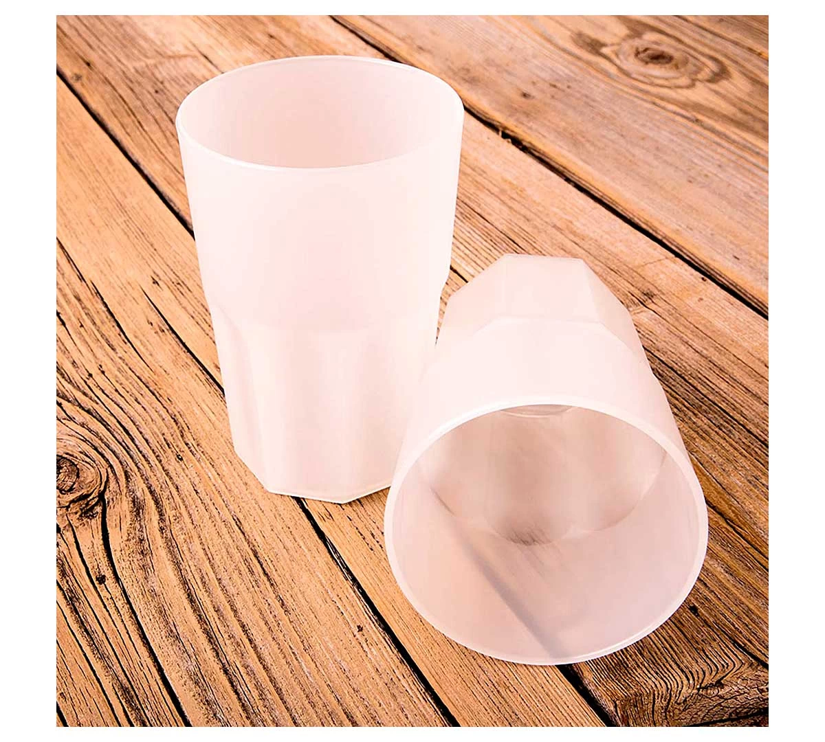 El Vaso Granity de Macadamia está fabricado en Poliestireno PS traslúcido. Es prácticamente irrompible.