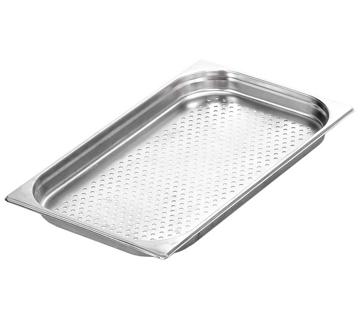 La Cubeta Perforada Gastronorm GN 1/1 de Mychef está fabricada en acero inoxidable y sus medidas son 53 x 32,5 cm.