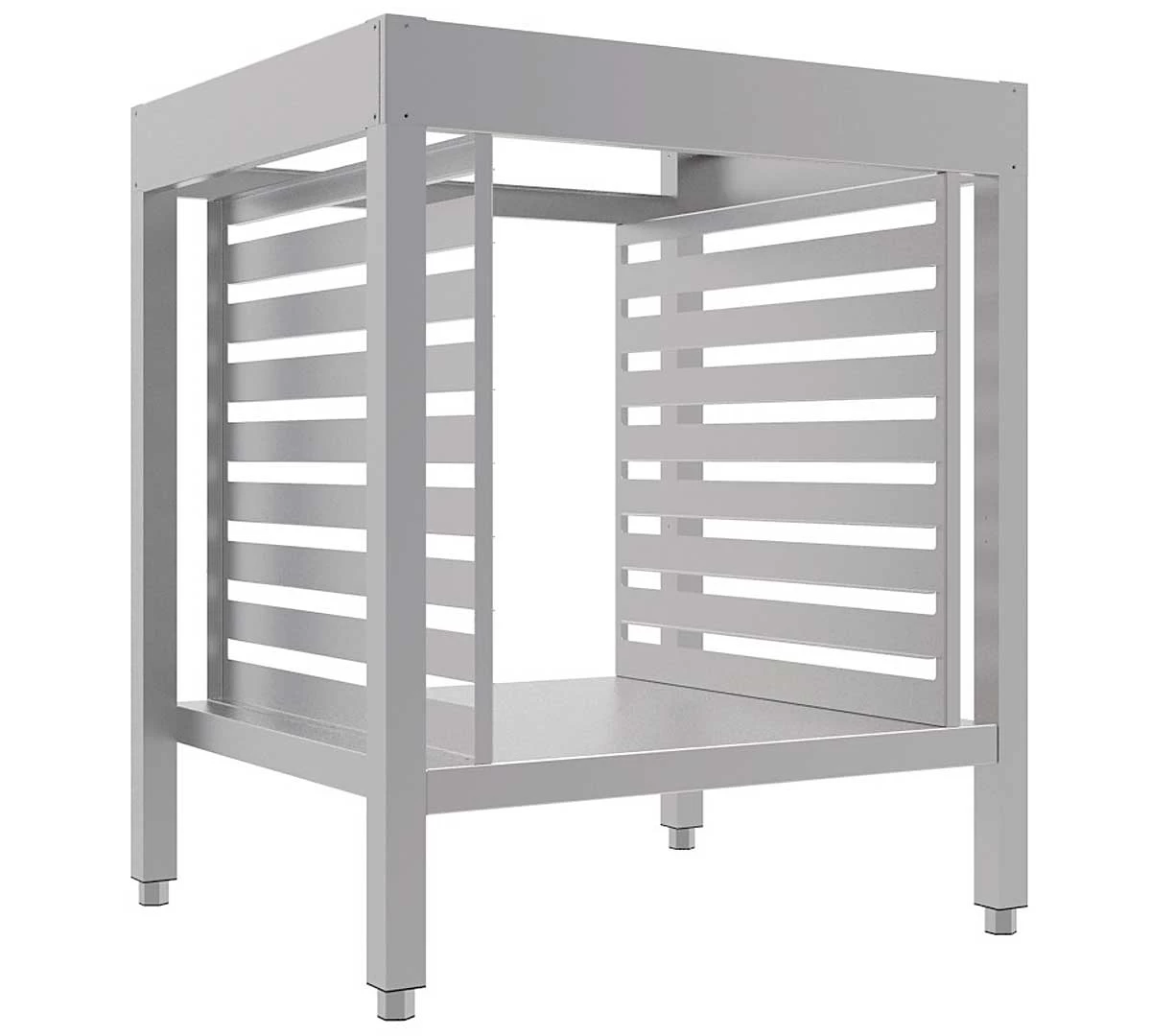 El Soporte con Guías 46 x 33 cm de Mychef, es una estructura apta para colocar individualmente los hornos Mychef. Sus 8 ranuras de inserción permiten almacenar bandejas 46 x 33 cm ya sean limpias, preparadas o usadas.