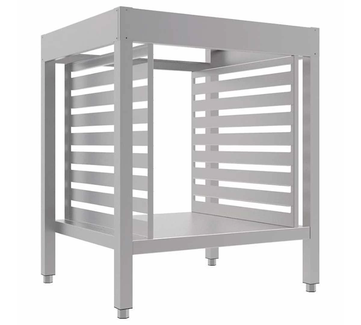 El Soporte con Guías GN 1/1 de Mychef, es una estructura apta para colocar individualmente los hornos Mychef. Sus 8 ranuras de inserción permiten almacenar bandejas GN 1/1 ya sean limpias, preparadas o usadas.