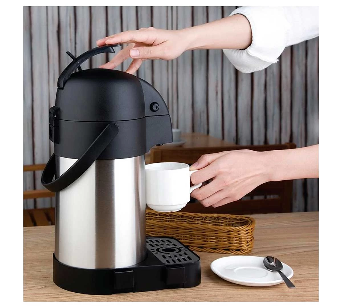 - Tiene doble pared de aislamiento con bomba de palanca que mantiene las bebidas frías o calientes.