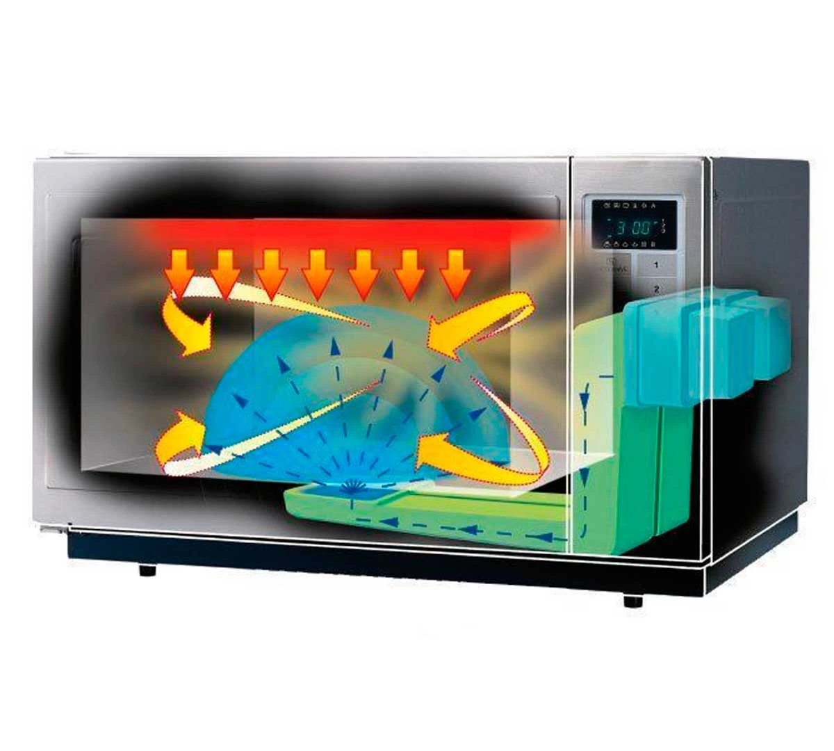 El Microondas Profesional Clase Combinada de Panasonic es un producto de alto rendimiento y máxima flexibilidad. Ideal para preparar tostadas gratinadas, pizzas, repostería, gratinados, asados, sopas o verduras frescas estarán sobre la mesa en un abrir y cerrar de ojos.