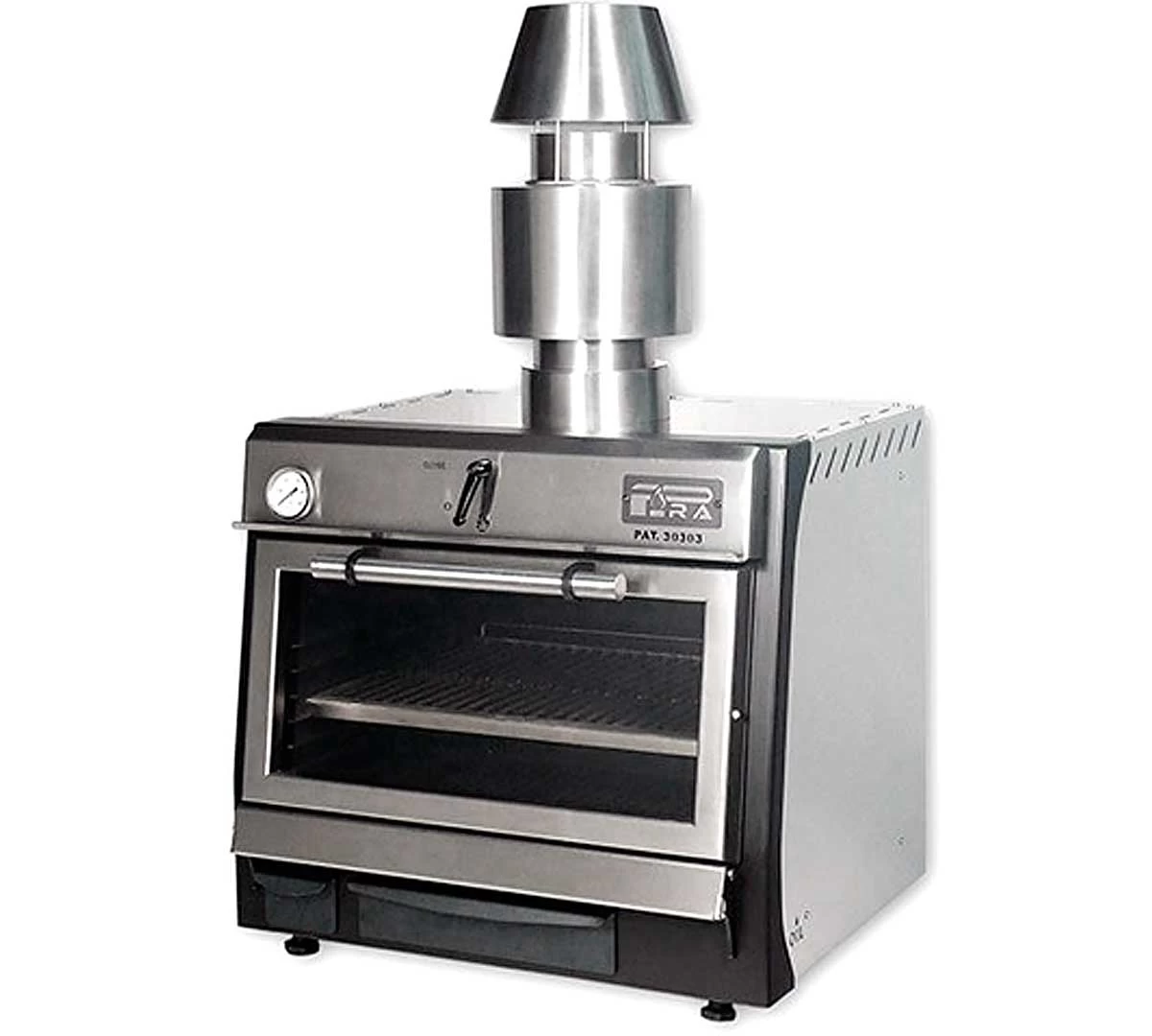 - Equipado con termómetro, cortallamas y regulador de tiro interno, preparado para funcionar desde el primer momento, situándolo únicamente bajo una campana.