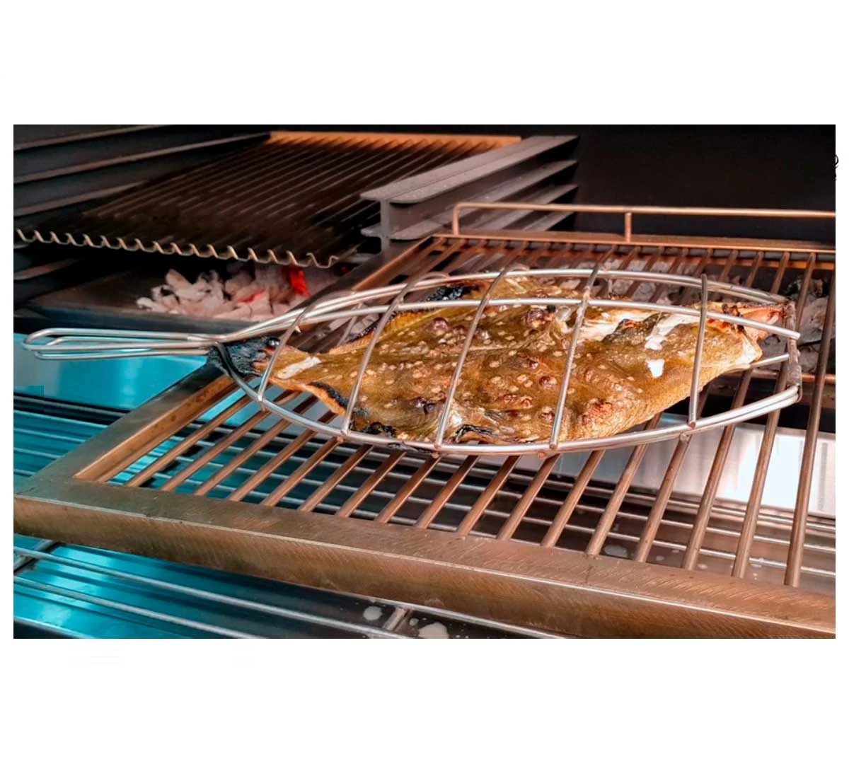 Es ideal para asar el pescado sobre la parrilla al estilo de Getaria, en horno brasa o barbacoa.