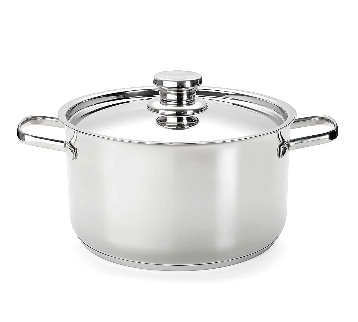 La Cacerola Alta con Tapa Daily de Pujadas está fabricada en acero inoxidable, tiene las asas tubulares y es apta para cocinas de inducción. Incluye tapa plana.