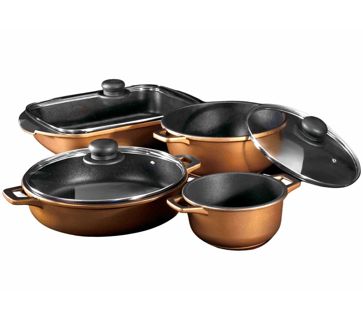 Esta cazuela forma parte de la gama de aluminio fundido de color bronce. Puedes ampliar esta colección añadiendo cazuelas bajas y rustideras.