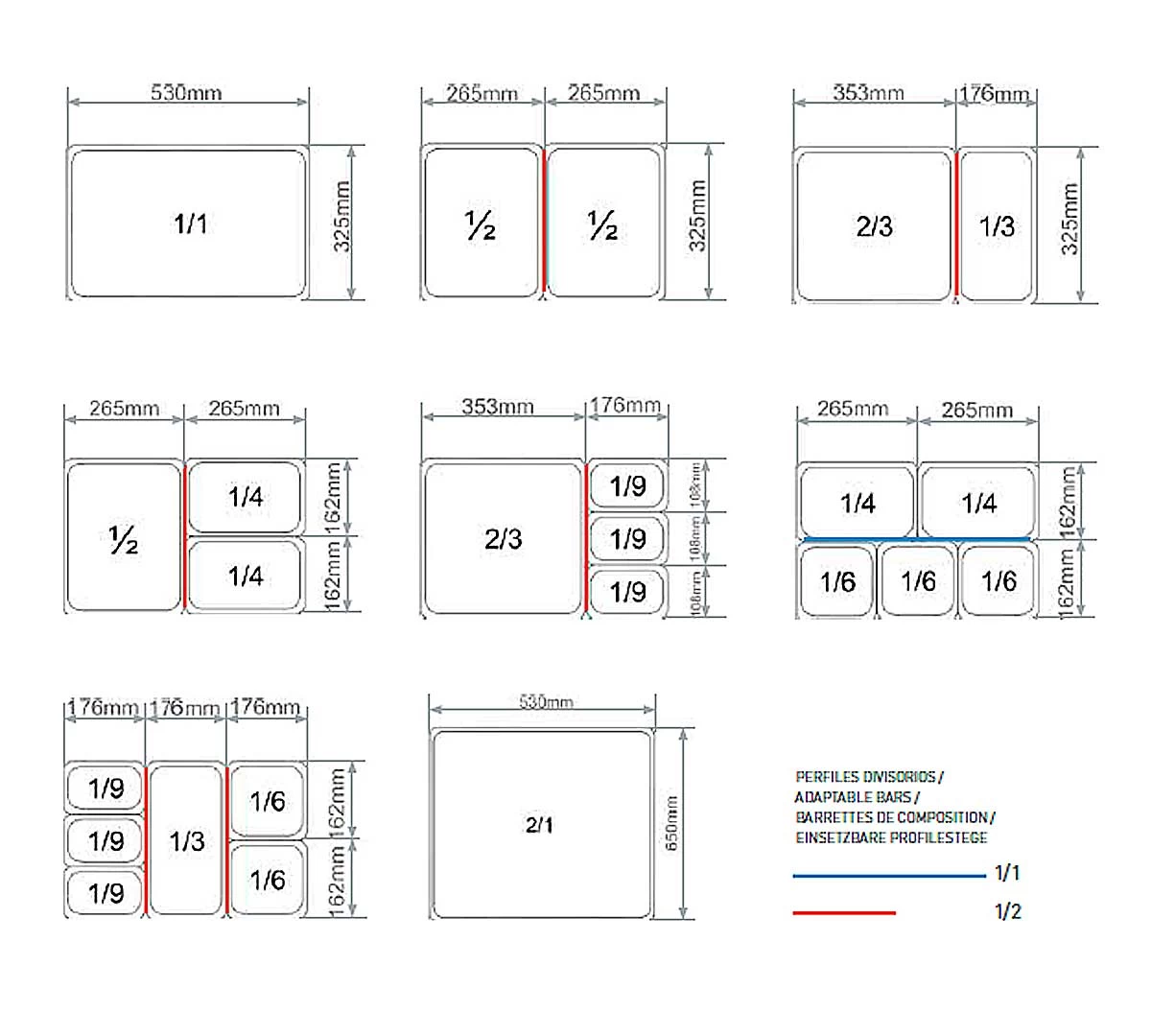 La gama de Cubetas GN tiene una amplia variedad de complementos como fondos perforados, bandas selladoras o perfiles divisorios que puedes encontrar en esta .