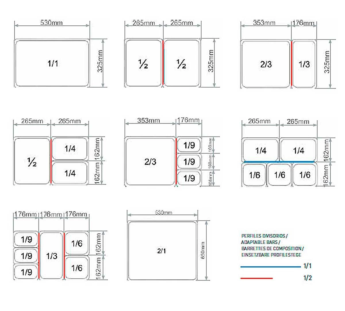 - De tamaño GN 1/1 con medidas de 53 x 32,5 cm.