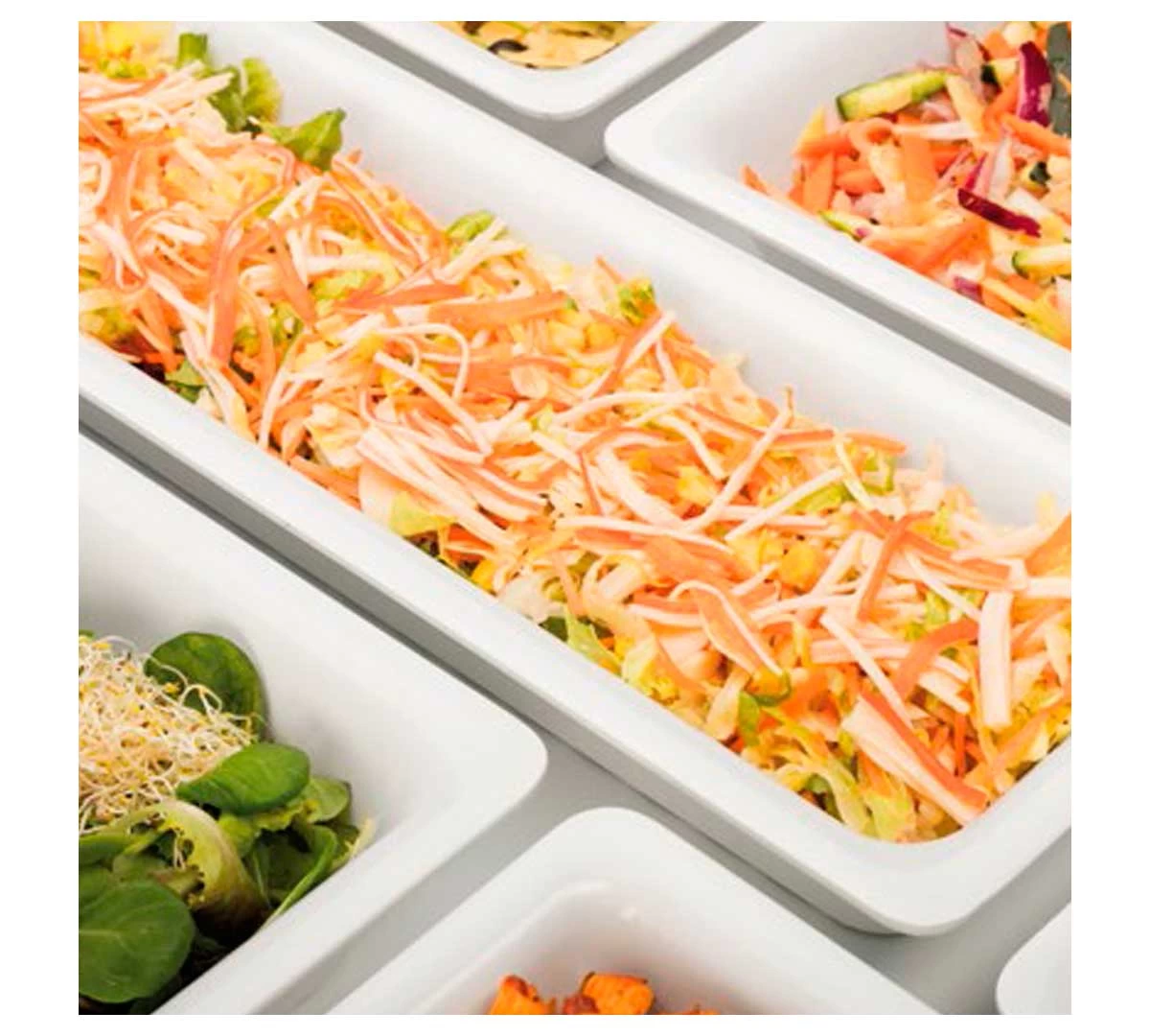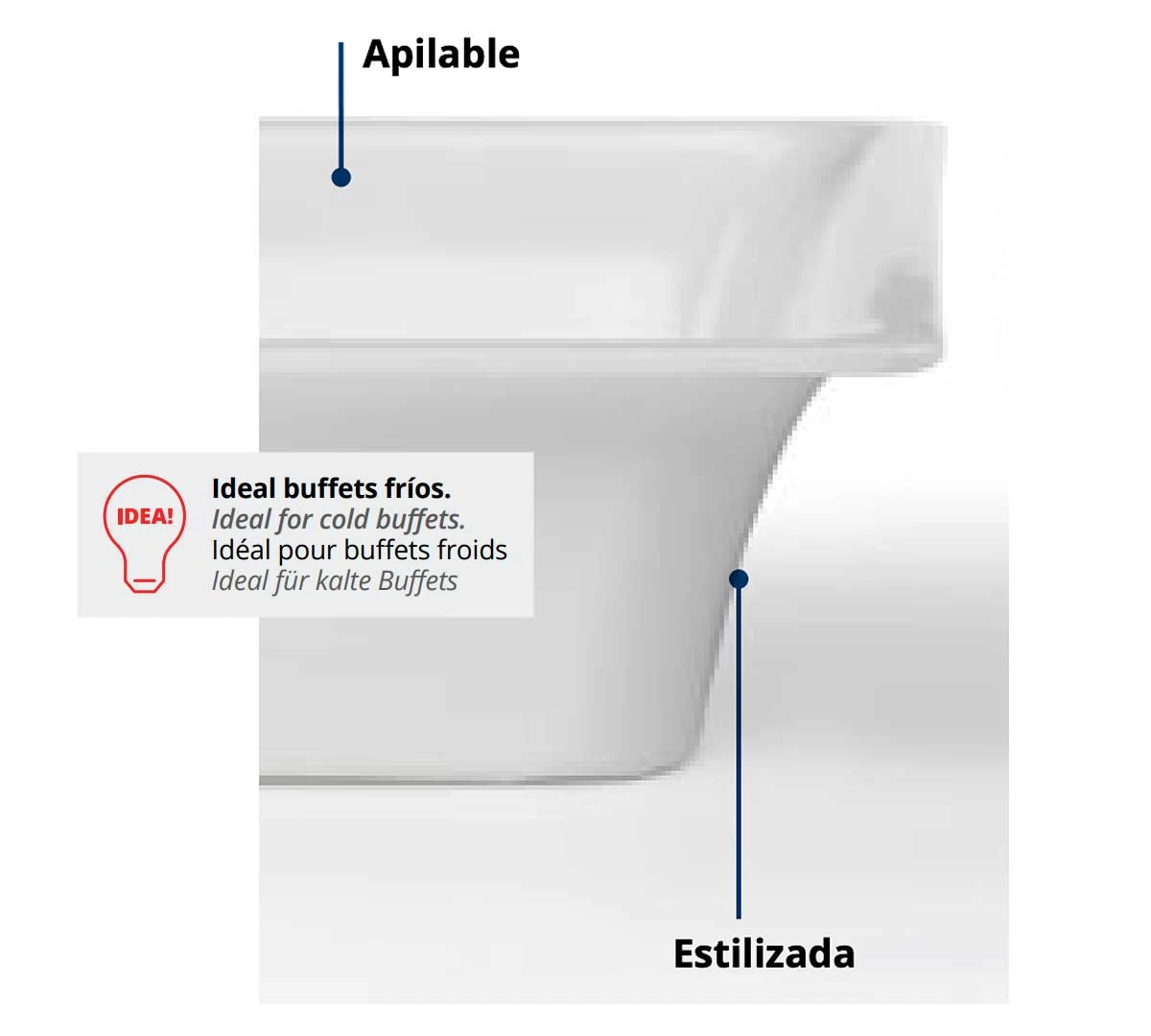 De gama económica. Está diseñada para la presentación de alimentos fríos en buffets.