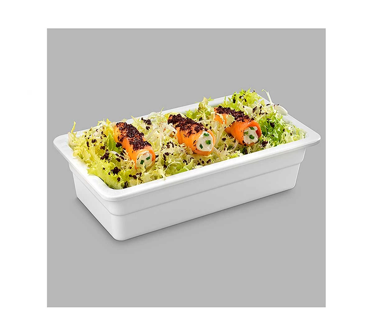 La Cubeta Gastronorm GN 1/4 Melamina de Pujadas se caracteriza por su resistencia al calor y la corrosión. Este material no es tóxico. Es inodoro, ligero, indeformable y poco conductor del calor. Su medida es 26,5 x 16,2 cm.