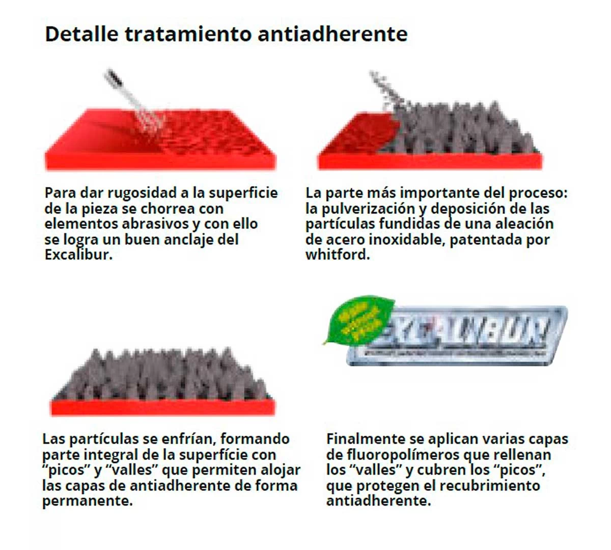 La Sartén Antiadherente Excalibur Ergos Inox Pro está fabricada en acero inoxidable. Permite una máxima resistencia a la abrasión y es de larga durabilidad.