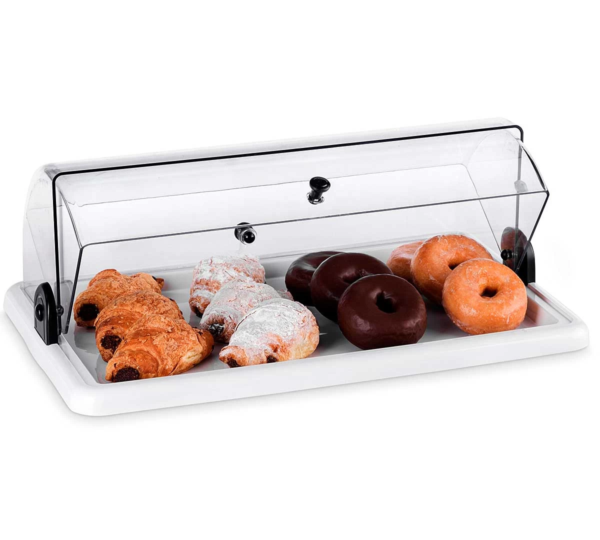 La Vitrina Neutra para Bollería Rectangular de Pujadas tiene puerta abatible y 1 piso.